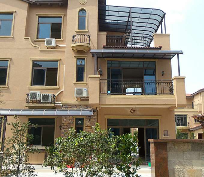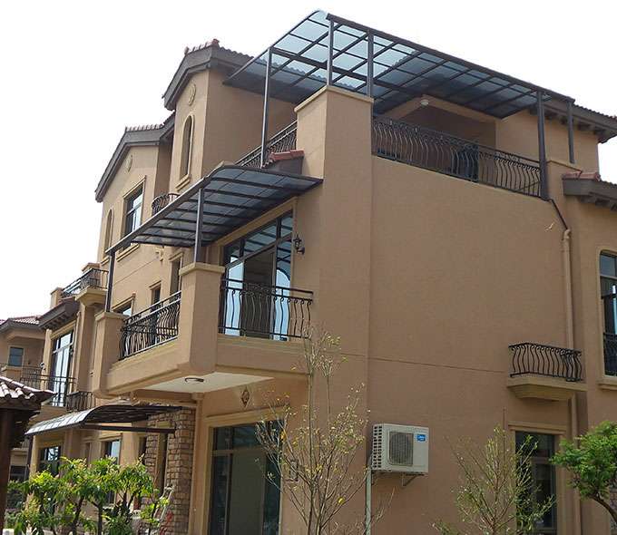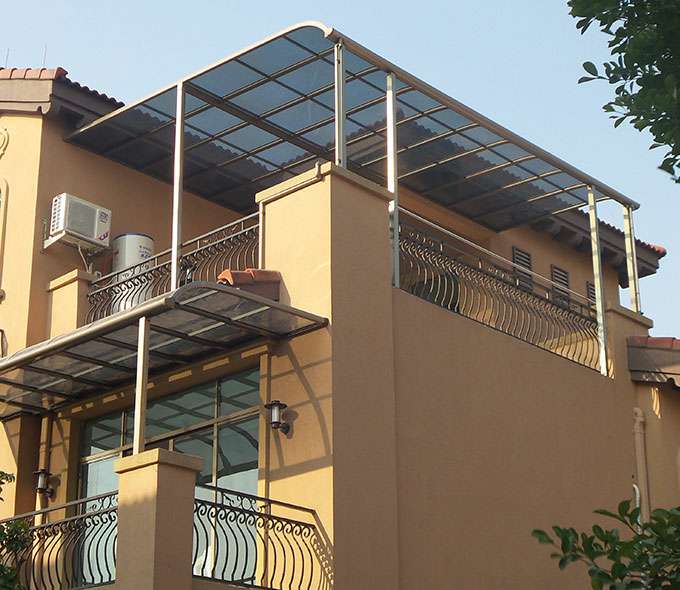 厦门维安绿色农业发展有限公司雨棚系列产品是高强度铝合金和聚碳酸酯板(耐力板)的结合。主体结构全部采用高品质、高强度铝合金材料精加工而成,表面特殊的工艺处理,具备氧化保护,不生锈,不变色,大大提高了雨棚的使用寿命。
