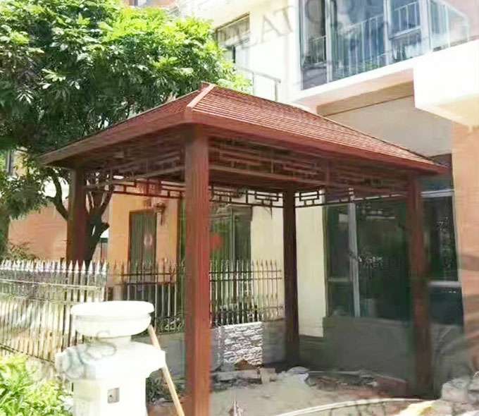厦门维安绿色农业发展有限公司凉亭系列产品是采用高强度铝合金为原材料,经酸洗铬化,电泳或静电喷涂,木纹转印处理后,精密定制设计,保障安装。它具有防水防潮,不膨胀不变形,防腐蚀,具有逼真的木质感。成为别墅住宅及市政园林等建筑美丽的风景。