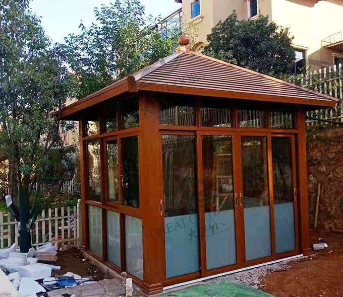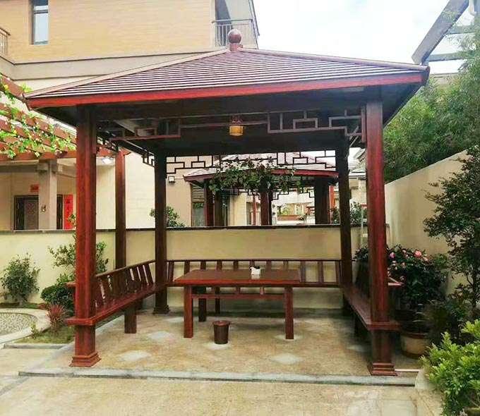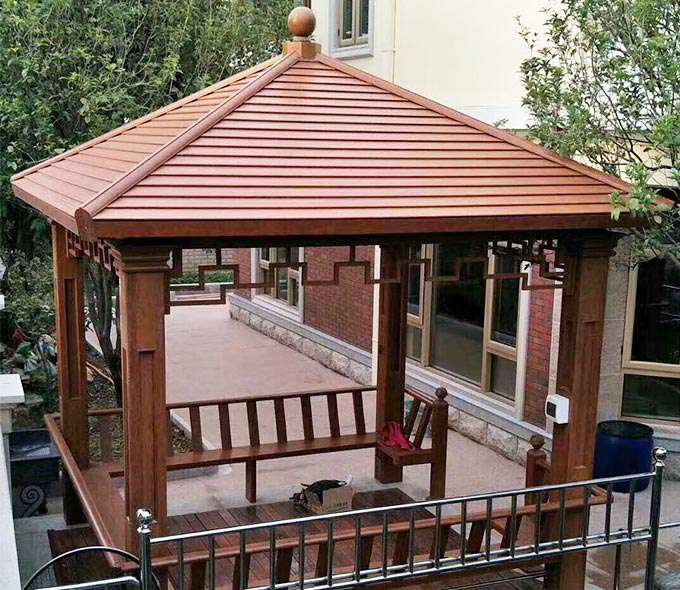 厦门维安绿色农业发展有限公司凉亭系列产品是采用高强度铝合金为原材料,经酸洗铬化,电泳或静电喷涂,木纹转印处理后,精密定制设计,保障安装。它具有防水防潮,不膨胀不变形,防腐蚀,具有逼真的木质感。成为别墅住宅及市政园林等建筑美丽的风景。